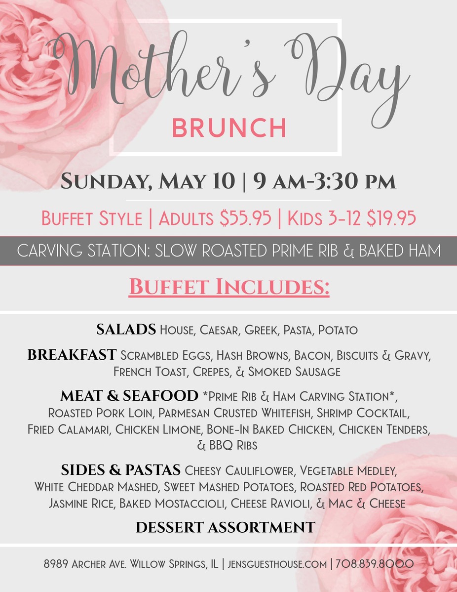 4pm-9pmMothers Day Dinner BuffetSunday, May 10th, 2026
